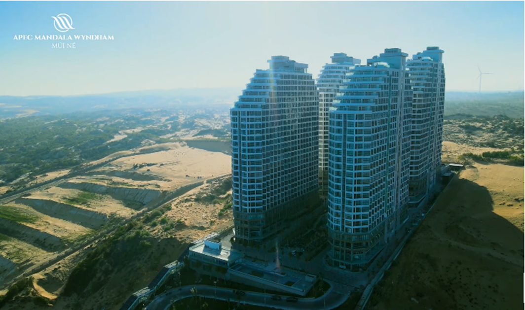 Khu nghỉ dưỡng Apec Mandala Wyndham tọa lạc tại tuyến đường DT716, thuộc địa phận xã Hòa Thắng, TP. Phan Thiết, tỉnh Bình Thuận. Dự án có tổng diện tích khoảng 4,5ha gồm 4 tòa tháp, cao 25 tầng, cung ứng ra thị trường với tổng số 2.982 căn condotel.