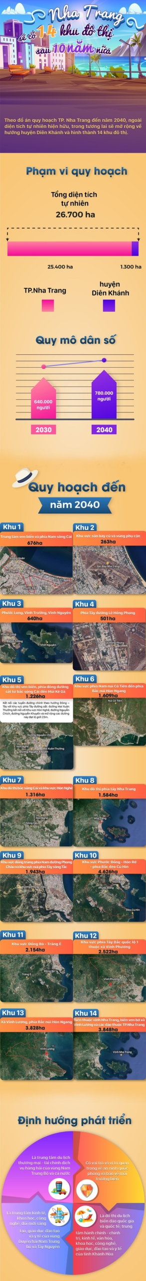 Theo đồ án quy hoạch TP. Nha Trang đến năm 2040, ngoài diện tích tự nhiên hiện hữu, trong tương lai sẽ mở rộng về hướng huyện Diên Khánh và hình thành 14 khu đô thị.