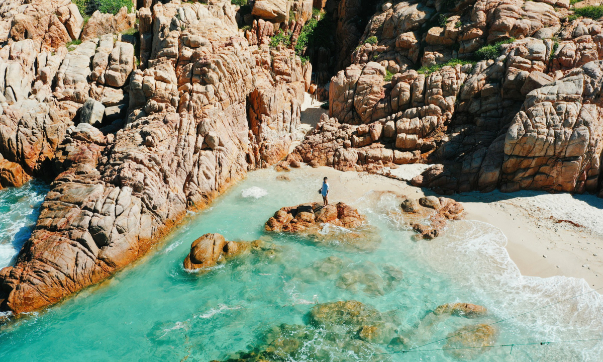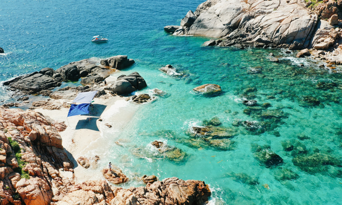 Sở hữu khung cảnh hoang sơ và nước biển xanh trong màu ngọc bích, Hòn Tai như “viên ngọc thô” nằm ở vịnh Vĩnh Hy.